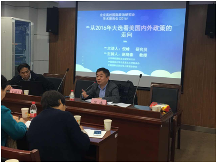 倪峰研究员指出,特朗普上台会导致美国政治中的不确定性增多,如,种族矛盾和冲突加剧,国家医保政策改革,对TPP的否定会多于继承,外交上会注重本土主义、侧重孤立主义政策,亚太战略会出现调整。倪峰教授认真回应了老师们提出的相关问题。