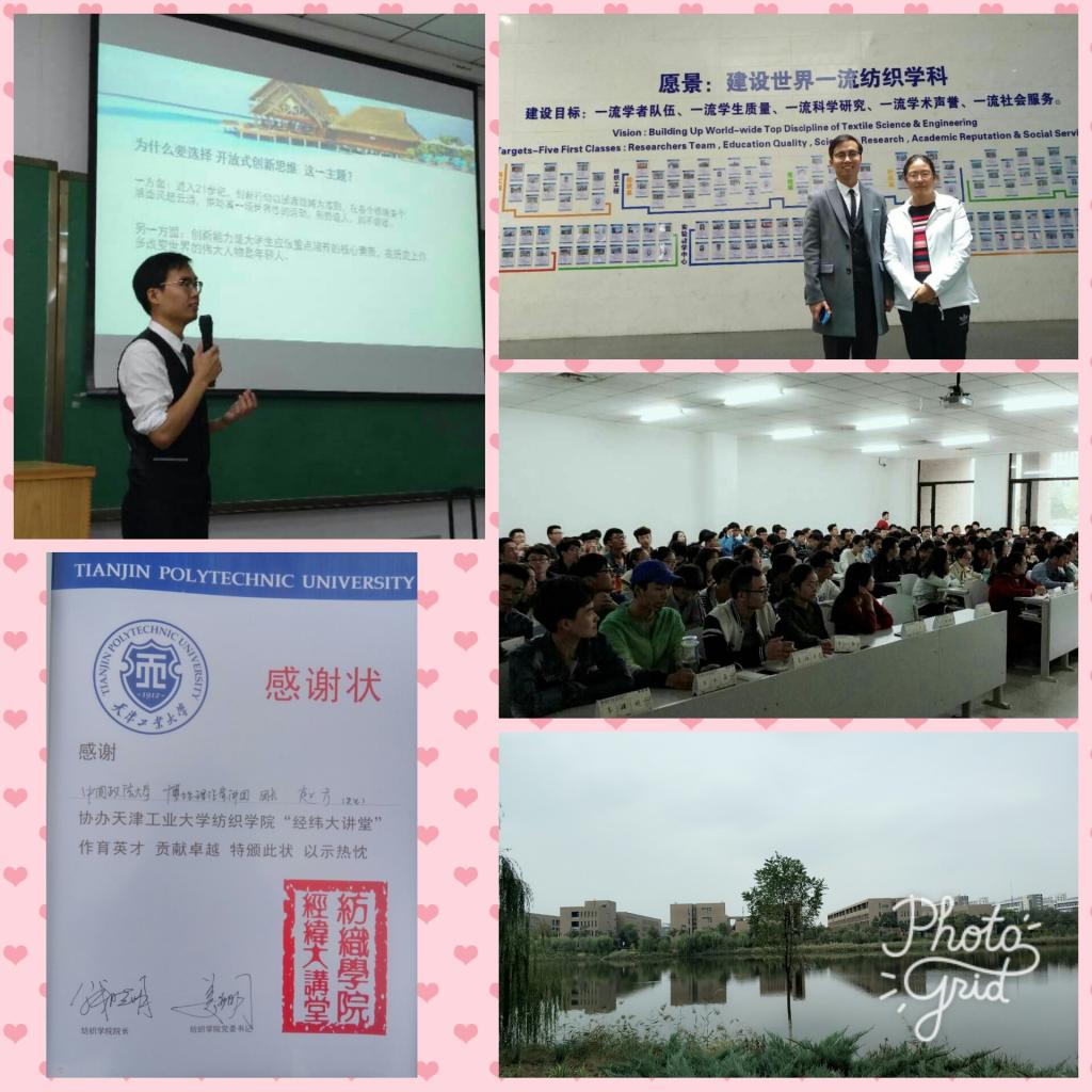 博士生理论宣讲团团长、2014级博士生党支部书记赵方受邀前往天津工业大学,在纺织学院一楼报告厅开展了以“学习习近平总书记重要讲话精神 喜迎党的十九大胜利召开”为主题的讲座。