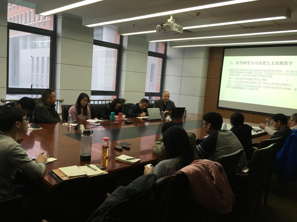李其瑞教授对比国内法哲学的研究现状,深入细致地介绍了西方马克思主义法哲学的主要思想流派,阐明了当下进行马克思主义法哲学研究的重要性。他从马克思主义法哲学的含义——从言说走向实践的理论体系、马克思主义实践法律观的基本内容、法学研究与马克思主义实践哲学等三个方面系统介绍了马克思主义法哲学的实践旨趣。他认为,全文只有1400多字的马克思《关于费尔巴哈的提纲》一文,是我们了解马克思主义实践法律观的方法论指南。马克思主义哲学给予我们最深刻的启示,就是要紧紧抓住实践这把钥匙。无论对法律本体问题的认识,还是对法律认识问题的梳理,以及对法律价值问题的揭示,都只能在实践中加以展现。实践是连接人与法之间的桥梁和中介,人的法律需要的类别、大小和存在方式等均受到实践发展水平的影响,同时,法律的价值也只能在实践中得以实现。在当代世界,人们对社会、政治以及法律等“社会实践”或社会生活问题的关注和研究已经超越了传统的本体论和知识论,这说明实践哲学在当代的复兴与回归,同时,也意味着从理论转向实践是当代哲学以及人文社会科学发展的趋向。