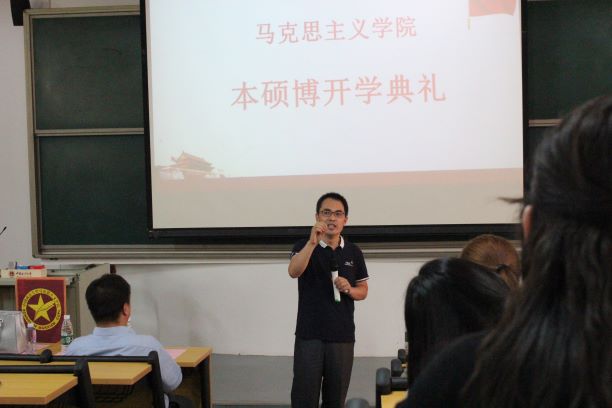 的课堂上,成为马克思主义理论的学习者、信仰者、研究者和宣传者,是你们的幸运,也是你们家人和朋友的荣耀。”邰院长勉励新生调整心态,转换角色,精心设计自己未来的发展规划;认真学习,发奋读书,努力做一个理想信念的践行者而不是夸夸其谈的空想家;放下身段,广结善缘,为自己和他人创造更多的发展助力;善于思考,理性分析,客观冷静地应对各种社会思潮。并期待学院新生铭记马克思关于我们的目标不单纯是为了解释世界,更重要的则是改造世界的警醒,努力从身边的小事做起,成为一个学识丰富、立场坚定、头脑清醒的马克思主义者!