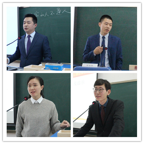 来自四门思想政治理论课和马克思主义理论不同二级学科的十位青年教师,根据自己的专业特长和教学内容,先后登台献艺,各有千秋。张鑫毅老师以“道德和法律的冲突”为主题娓娓道来;周增光老师通过大量图片史料的展示,剖析了“形象重塑与文明传播视域下的近代中西互视”;赵海全老师以延安时期新富农阶层为例,详细阐述了党内法规的解释原则;袁芳老师以视频为切入点讲解了“法治思维”提出的时代背景和主要内容;蔺庆春老师对施蒂纳提出的“现实的人不是人”这一论断展开了深入的理论解析;何海燕老师围绕“法兰克福学派的文化批判”展开层层剖析;王觅泉老师以对话的方式,对人性自私论进行了抽丝剥茧的分析;吴韵曦老师通过案例深入浅出地讲述了政党变革的路径、因素及启示;孙全胜老师通过比较分析讲授了如何树立正确的世界观;靳晓春老师围绕“房子是用来住的,不是用来炒的”进行了政治经济学的剖析。
