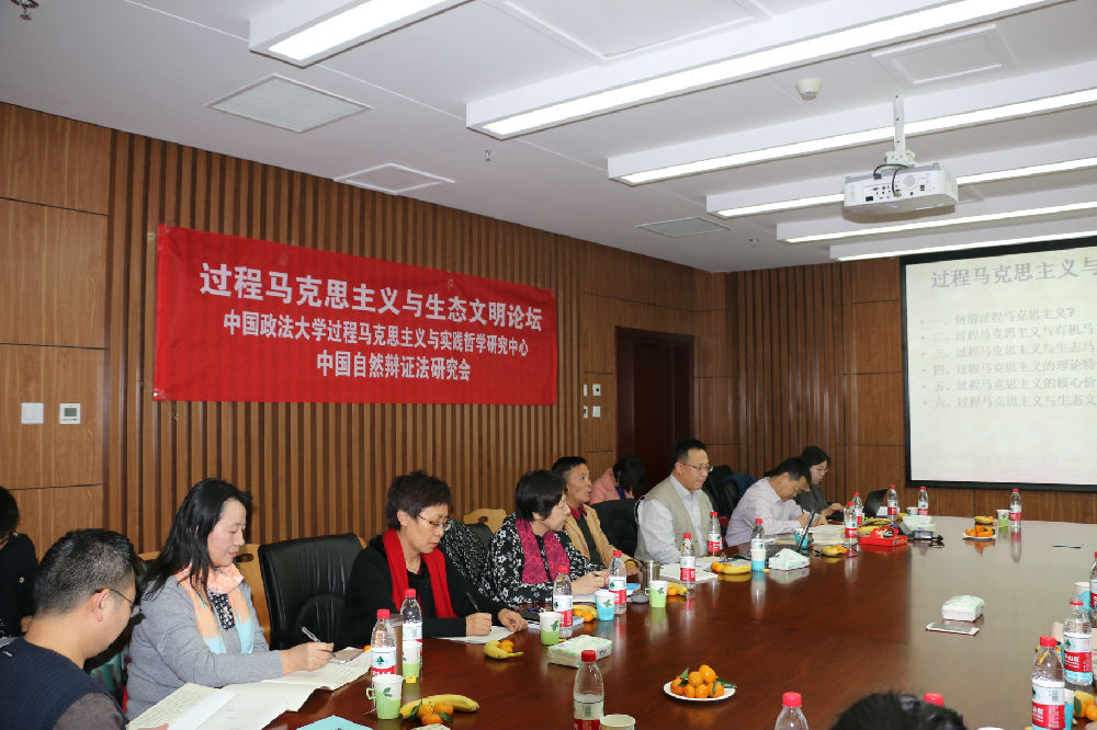 学院路校区科研楼B205顺利召开。美国过程研究中心中国部主任、中美后现代发展研究院执行副院长王治河教授应邀作了主题报告,就过程马克思主义的内涵、理论特色、核心价值观及其与生态文明的关系等问题进行了探讨,指认过程马克思主义与有机马克思主义是一体两面,倡导厚道地对待自然,厚道地对待他人,厚道地对待未来世代、厚道地对待自己,要勇敢地活出生命,活出风格,活出优雅,活出美。中国自然辩证法研究会副理事长、北京师范大学科学与人文研究中心主任刘孝廷教授到会,并对王治河教授的报告作出富有新意的点评;北京出版集团副总编高立志,北京师范大学禁漫
