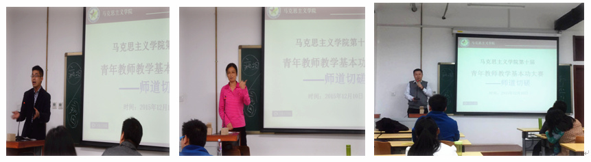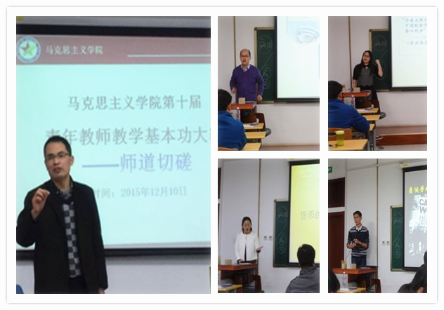 已成功地举办了多届教学基本功大赛,由于有声有色地形成自己的独特风格,受到校领导特别是冯世勇主席的多次表扬,也真正达到了提高青年教师教学能力和教学水平的目的,涌现出一批批优秀的深受学生欢迎的老师,可以说,他们从讲台走向这个舞台,又从这个舞台走向更高的领奖台。因此,青年教师教学基本功大赛在促进青年教师的成长以及新老教师之间相互交流并共同提高中,起到了不可替代也无法或缺的积极作用。最后,他希望大家继续发扬马院“一届带一届”的教学传统,不断提高全院教学质量;预祝年轻的5位选手取得好成绩;感谢各位专家评委、各位老师和同学们的参与和支持。