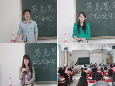 硕士研究生中的优秀学生代表也与同学们分享了他们的经验。王森垚同学向同学们说明了勤奋与文字表达的重要性,提醒大家要勤于思考、勤于练笔。王文凤同学认为写论文时观点切忌相似,可以换一种思维、换一种角度、换一个学科观点来准备自己的毕业论文。颜沛同学认为要丰富生活,塑造专业自信,多重视能力的培养。本科生代表周杨同学提出,如果有想法就要坚持下去,寻找到你的兴趣点,然后一如既往地坚持不懈。唐西霞同学认为同样的材料,同样的资源,可以有不同的排列组合,每个人就有不同的结果。