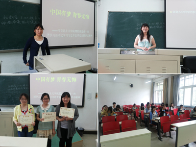 首先由团支书闫璐系统阐述了习近平总书记五四讲话精神,学习的主要内容包括,第一,长江后浪推前浪,一代更比一代强,广大青年应肩负起时代重任;第二,功崇惟志,业广惟勤,广大青年一定要坚定理想信念;第三,学如弓弩,才如箭镞,应该把学习作为首要任务;第四,苟日新,日日新,又日新,广大青年一定要勇于创新创造;第五,创建青春之国家,青春之民族;第六,宝剑锋从磨砺出,梅花香自苦寒来,广大青年一定要矢志艰苦奋斗;第七,空谈误国、实干兴邦,立足本职、埋头苦干,从自身做起;第八,从善如登,从恶如崩,始终保持积极的人生态度、良好的道德品质、健康的生活情趣。此外,我班同学程琦、王萌、曾丹也畅谈了她们的“中国梦”,她们表示,作为大学生,学习并践行“中国梦”具有现实意义,激励着我们坚定理想、努力学习,奋发图强,从点滴做起,从小事做起,为实现中华民族伟大复兴的“中国梦”贡献自己的青春和力量。
