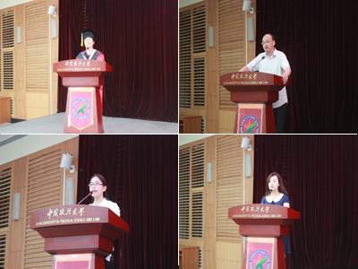 大会第四项议程是由马克思主义基本原理研究所所长、法大连续两年最受本科生欢迎十大教师之一的赵卯生老师发言。他表达了对2013届本科生毕业的祝贺,从“智商”,“情商”,“人脉”,“机遇”四个方面讲解为人处世的道理,并向毕业生提出,今日你以法大为荣,明日法大以你为傲。但问题的核心是,你凭借什么让母校以你为傲。他叮咛毕业生们,法大并不以毕业生将来事业发展中的财力和权力来衡量毕业生是否成功,在任何岗位上只要能做一个被大家所信任所喜欢的人,在工作岗位上能够胜任自己的工作,就是母校以此为傲的法大人。他提醒毕业生不要抱怨在工作中多干活,因为多干活暗藏着人生和事业发展的种种机遇,正是这样的机遇可以帮忙每一个人成就自己的梦想,实现自己的人生价值。谆谆教诲引起了全体毕业生的深思,也为毕业生上了一堂生动的思想政治教育课。