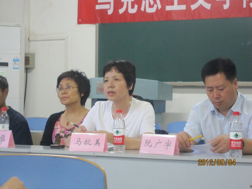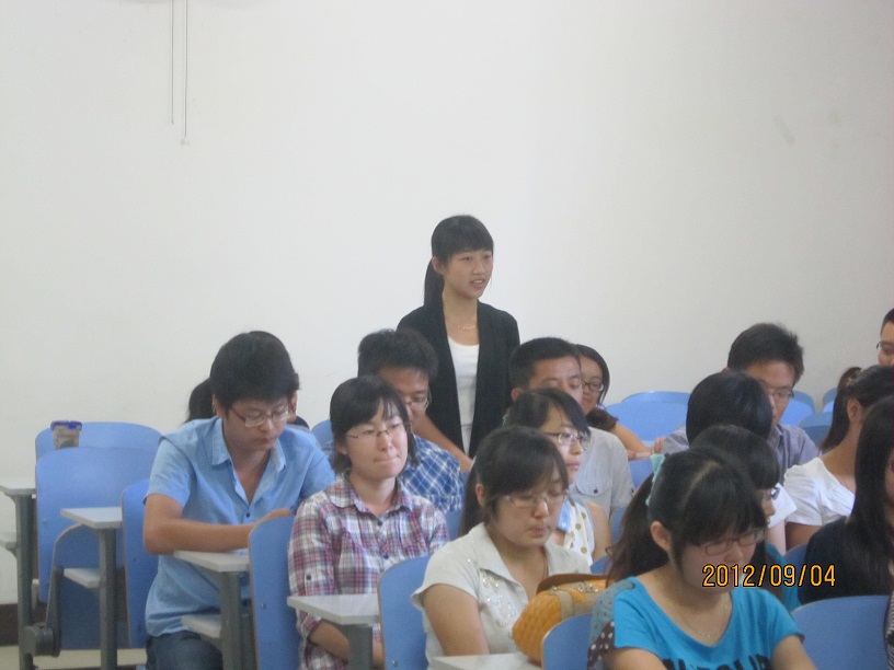 将坚持走内涵式发展、特色发展、创新发展之路,不断实现跨越式发展。此外,她也对12级研究生提出了期望,希望他们加强自我修养提升整体素质,注意不同专业之间的相互借鉴交流。之后,博士生导师代表孙美堂教授从三个方面对博士生提出了建议,希望他们加强忧患意识,学科意识,注意与导师、同学多沟通,希望有更多的马院的博士活跃在学术界。再次,硕士生导师代表孔祥宇副教授和研究生班主任王强博士分别对新生提出了要求,希望他们顺利完成身份角色、专业角色的转变,早日融入研究生的学习和生活。之后的师生互动环节,领导和老师们对学生们的疑问和问题进行了详细、生动的解答,会议气氛热烈。最后,阮老师对大会做了总结,他说,三年时光很快,希望新生早点明晰定位,做好规划,不虚度三年宝贵时光。