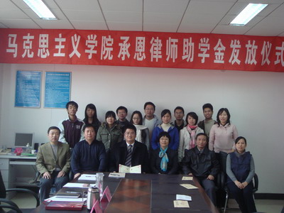 承恩律师助学金的设立和评选情况。副院长孙美堂教授宣读了获奖学生名单,曹聪等10名学生获得了“承恩律师助学金”。
