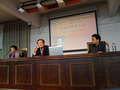 11月24日晚马克思主义院“新视野”系列学术讲座第三讲在学院路校区教学楼419学术报告室成功举办。本场讲座的主讲嘉宾是韩国驻华大使馆咨询员、北京大学朝鲜半岛研究中心研究员文日铉教授。禁漫