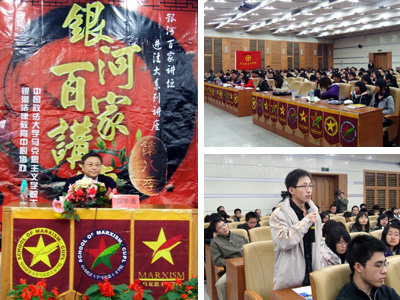 创办的“银河百家讲坛进法大”系列讲座是本着“浓郁校园学术氛围,繁荣校园学术文化,弘扬校园学术精神,加强内外学术交流”的宗旨,定位于“前沿”,以学术为本,兼顾各个专业,力图将专业与人文现象、社会热点、学术论题及最新学术动态结合起来,满足广大同学对信息的不同需要。相信大家定能从中汲取知识的营养,在学术的殿堂里且行且思且远。