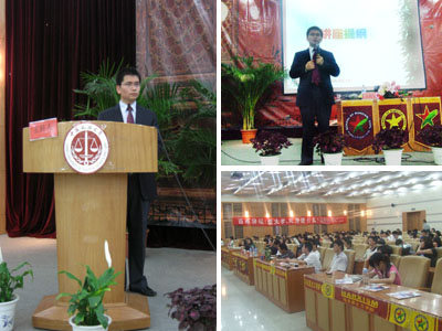 副院长孙美堂老师、以及银河法律中心创始人高淼鑫校友一同出席了本次活动。覃先生以“读大学,究竟读什么”为主题来进行今天的讲座。