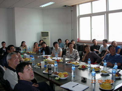 全体教师观看暑期考察的幻灯片