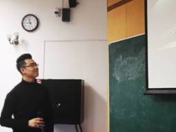 首先,由主持人张铮介绍到场嘉宾和本次活动的环节顺序。第一个环节是“瞎说”环节:使用一套完全陌生的PPT进行即兴演讲,并力求通过以幽默诙谐的方式呈现以达到意想不到的节目效果。第一轮由王铮老师演示,第二轮和第三轮则由两位主动上台的同学进行“瞎说”体验。嘉宾以及同学们凭借着幽默的口才和搞笑的天分对“法大夸夸群”,“柠檬精”等话题进行了独特的解读,为同学们带来阵阵欢笑。