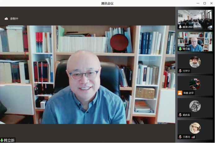 邰丽华院长首先致辞。她详细介绍了“名家领读经典”活动的举办初衷和韩立新教授的基本情况,并对韩立新教授的到来和对于活动的支持表达了欢迎和感谢。邰丽华教授介绍说,“名家领读经典”是由北京市教育工委牵头建设的大平台、多中心、开放式北京市级思想政治理论课精品课程、示范课程,自2016年以来,在京内多所高校连续举办,各个领域的众多学术名家走上讲台,为学子们带来了一场场精彩的思想盛宴。禁漫