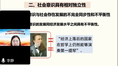 在选手授课展示时段,张一驰、李静、周增光、史婉婷、张艳萍、李彤、吴曼、程运麒、王政、张杨、王森垚、刘际昕、张鑫毅等13位青年教师分别就“从财政改革看清末‘新政’的失败”“社会存在与社会意识的辩证关系原理”“1912-1913年的共和尝试”“物质及其存在方式” “破除‘修昔底德陷阱’的迷思”“从学习苏联到以苏联为鉴:走中国工业化道路的思想”“民族区域自治制度”“中国式现代化大国形象展望”“葛兰西的文化领导权”“用劳动价值论分析‘脱实向虚’问题”“从社会主义发展史看科学社会主义在当代中国的历史意义”“走和平发展道路的中国式现代化”“诚信的定义与分类”等题目进行了逻辑清晰、精彩纷呈的讲授展示。