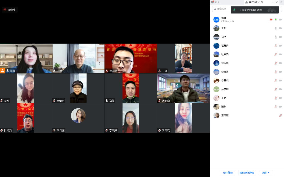 学习宣传贯彻党的二十大精神是当前和今后一个时期的首要政治任务。为帮助支部党员全面准确学习领会党的二十大精神,切实用党的二十大精神指导实践,12月1日下午,理论学习导师王强以“党的二十大精神学习汇报”为主题为2019级博士研究生党支部讲授专题党课,支部党员积极参加学习活动。