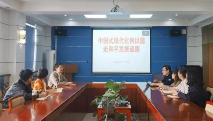 青年教师刘际昕以中国式现代化为主题进行教学展示活动,并分享学院、学校青年教师教学基本功大赛的参赛经验。