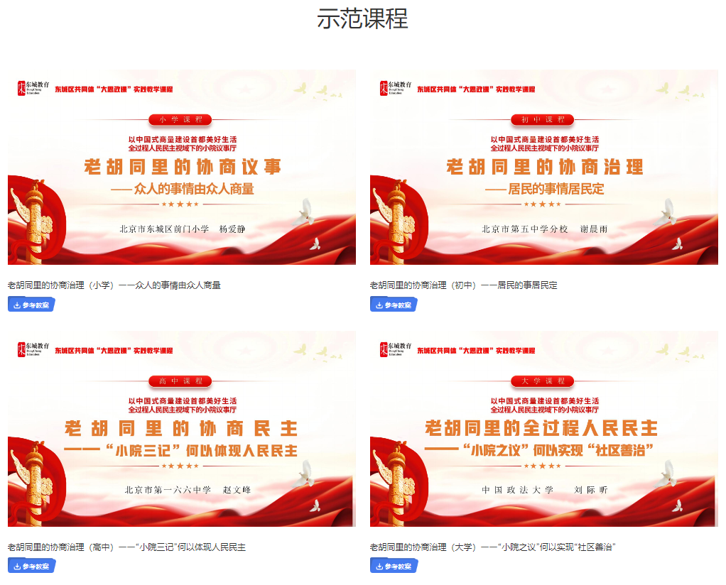 图5:“小院议事厅”实践教学基地大中小学四个学段示范课程