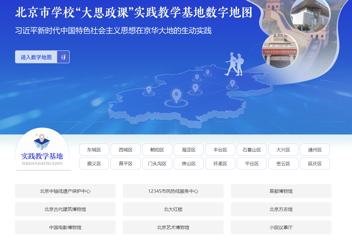 图2. 北京市学校“大思政课”实践教学基地数字地图