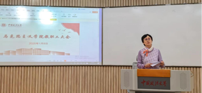 学院党委副书记王强作2024年学院党委工作总结。一年来,学院党委坚持以习近平新时代中国特色社会主义思想为指导,全面贯彻党的二十大、党的二十届三中全会和全国教育大会精神,纵深推进党的政治建设,广泛开展党的创新理论学习、研究和阐释,深入开展党纪学习教育,加强思想建设、组织建设、党风廉政建设,广泛开展“教育强国 法大何为”大学习、大调研、大讨论、大提升工作,坚持以高质量党建引领高质量事业发展,扎实有效地推进各项工作。