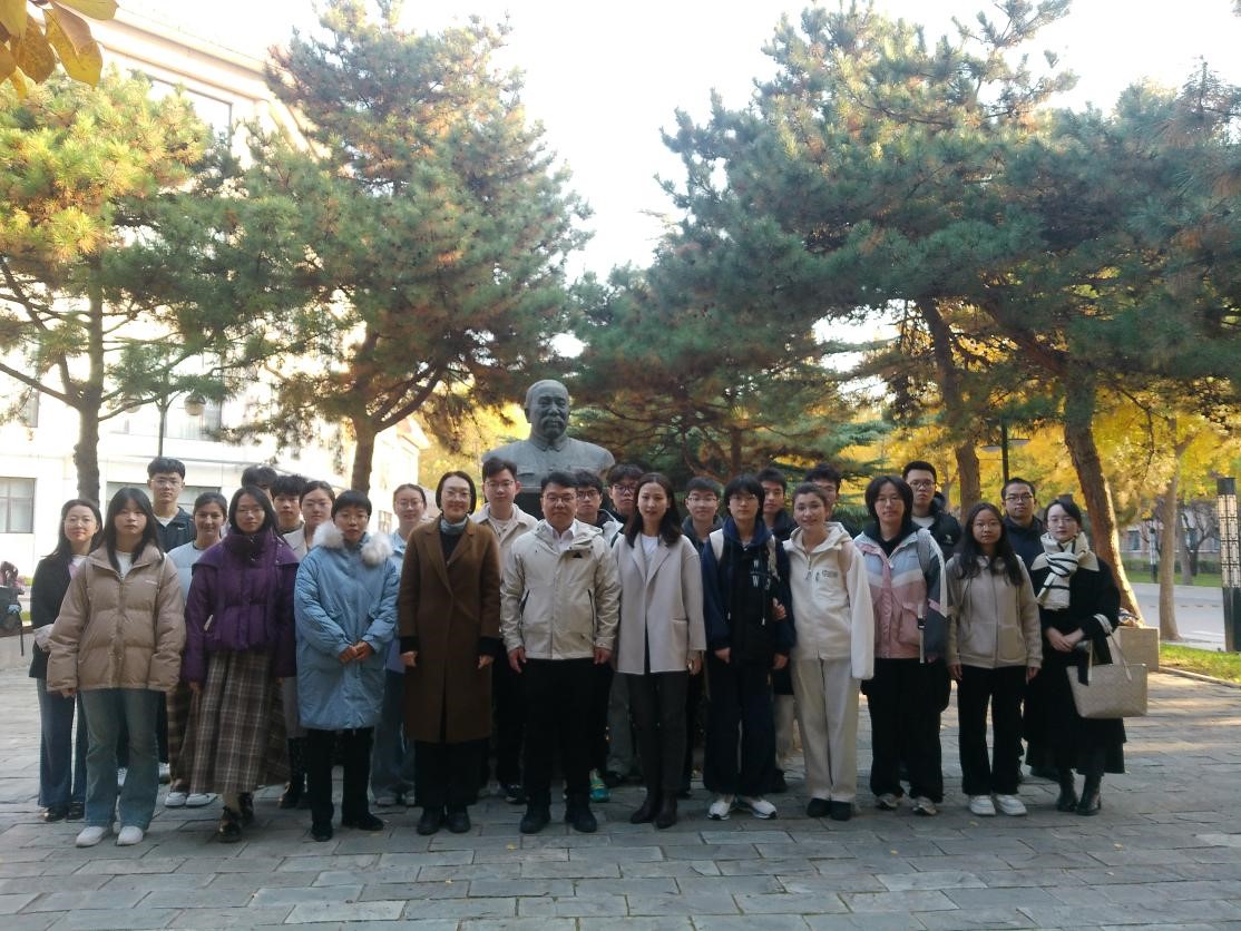 宣讲最后一站是逸夫楼内的彭真雕像。思政2401班的赵成湘介绍,1951年彭真任中央政法干部学校首任校长,为法大前身北京政法学院输送师资;1983年推动两校合并成立禁漫