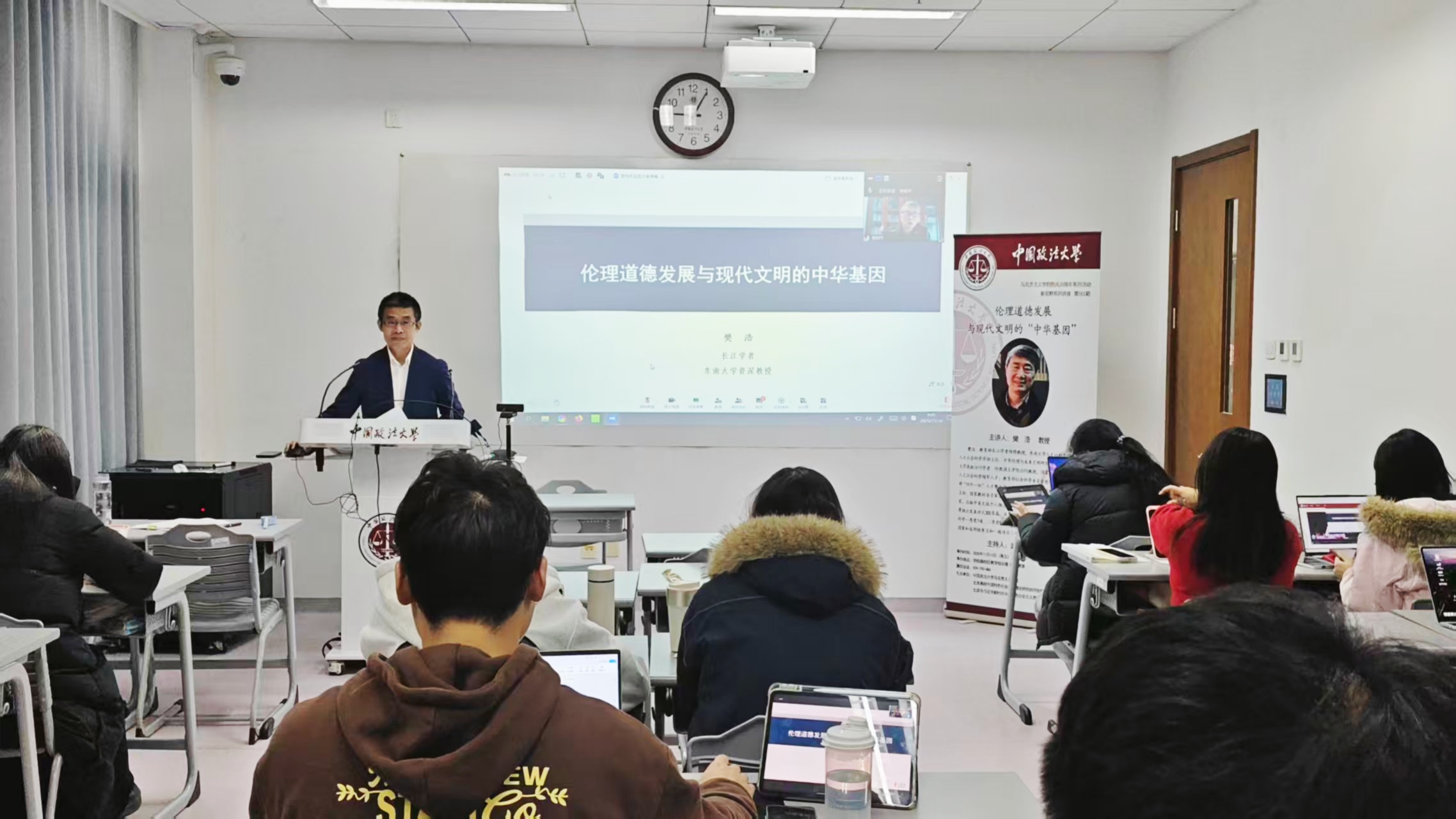 海淀校区综合楼0417教室成功举办,讲座主题为《伦理道德发展与现代文明的“中华基因”》。本次讲座特邀教育部长江学者特聘教授、东南大学人文社科资深教授樊浩先生担任主讲人,禁漫