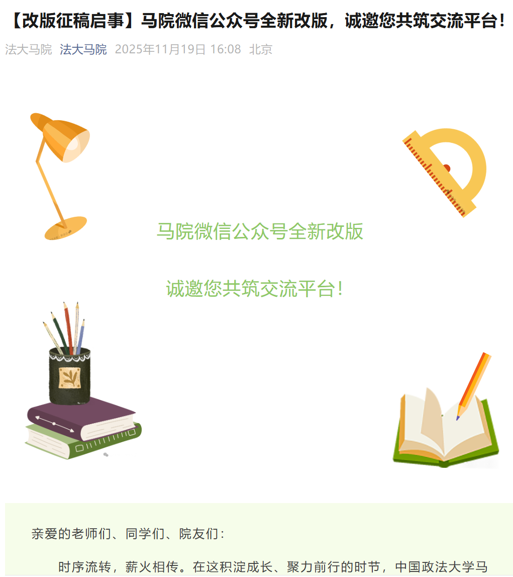 【改版征稿启事】马院微信公众号全新改版,诚邀您共筑交流平台!