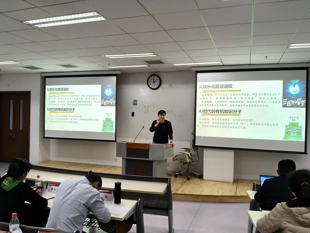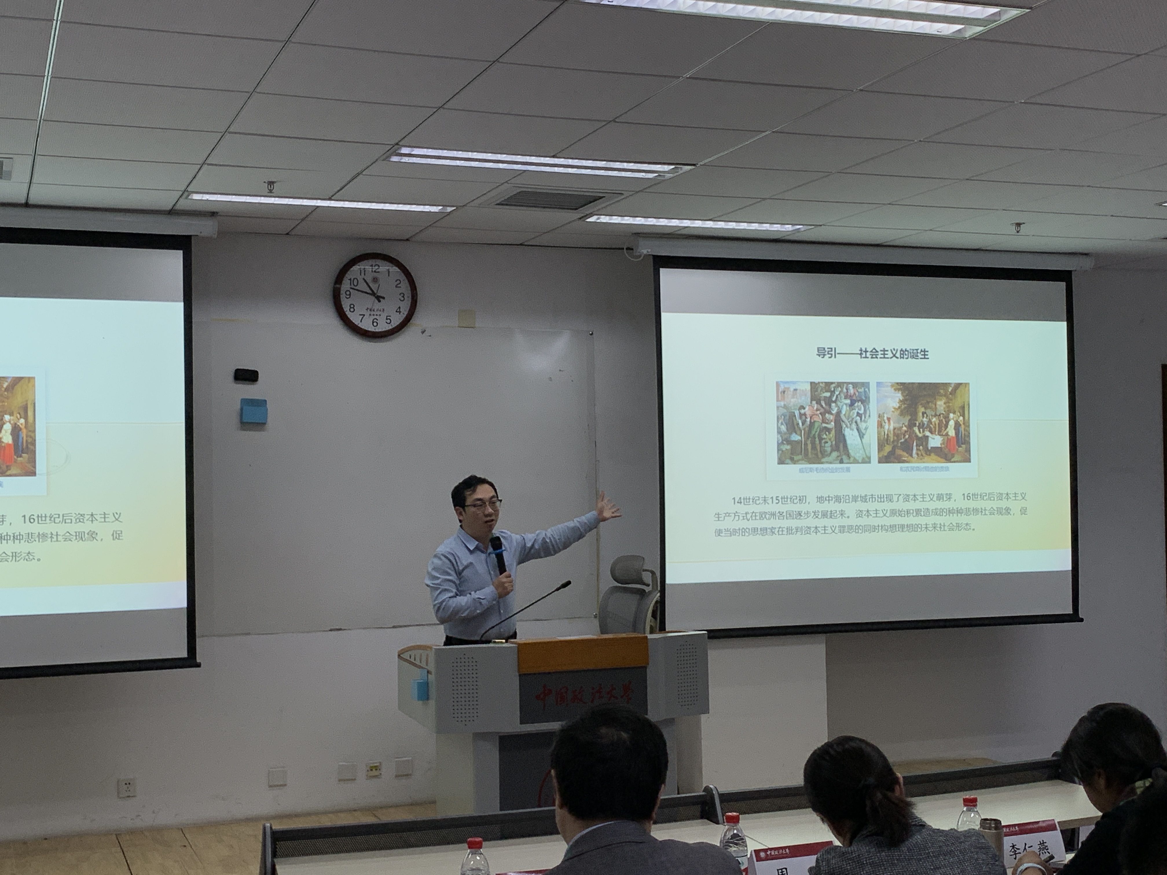 来自马克思主义基本原理研究所、中国近现代史研究所、中共党史党建研究所、形势与政策教研室的5位青年教师大展风采。他们基于各自主讲课程,精选主题,进行风采展示。王天蛟、张一弛、吴娇、杨博文、王政五位老师的报告主题依次为“中华优秀传统文化与马克思主义的内在契合性”“魏源与早期维新思潮的兴起”“社会主义建设道路初步探索的理论成果:《论十大关系》”“论空想社会主义”“如何看待AI复活历史人物”。