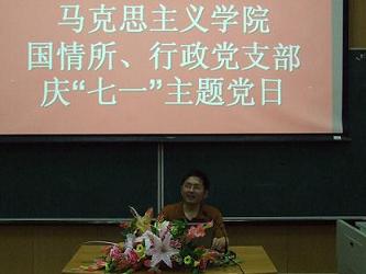 行政支部和国情所支部联合开展主题党日活动。活动以党课教育为主要内容,胡尚元做了《从抗震救灾看党的执政能力的提高》的主题报告;同时围绕抗震救灾的内容,全体党员缴纳了特殊党费。