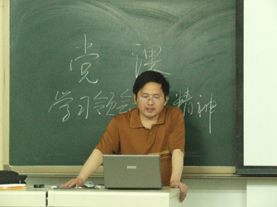 胡尚元老师,他饱含激情的讲授让大家再次受到了精神的洗礼。胡老师回顾了改革开放三十年来的成果并结合当今社会现实问题,指出,必须高举邓小平理论伟大旗帜不动摇,坚持走改革开放的道路,同时要更深层次地理解十七大的重要意义,在以后的学习或工作中将“改革开放”以来以及“十七大”中继承和发扬的精神贯彻于积极的实践当中。