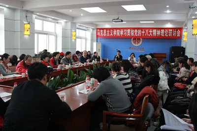 院长马抗美作总结发言。她指出,大家从理论研究者的视角,紧密结合党的十八大精神和各自研究领域,谈得很深入,擦出很多思想火花,深受启发。党的十八大报告是一个全面的治国、治党的纲领性文件,学习贯彻党的十八大精神是一项长期任务,也将贯穿于今后几年的工作。希望老师们在宣传过程中牢记自己的独特使命,把党的十八大精神贯彻到课堂教学、科研、工作各个方面,充分发挥集体智慧,形成教学科研的一股新力量,推动马院各项工作再上新台阶。