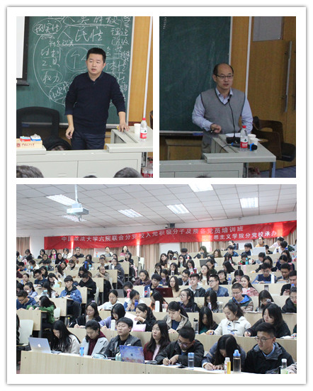 蔺庆春老师和王强副教授分别以“学习马克思主义理论,坚定共产党员的理想信念”和“全面从严治党,提高党的建设科学化水平”为题作了专题报告。蔺庆春结合习近平总书记在纪念马克思诞辰200周年纪念大会上的讲话,从为什么要学习马克思主义理论、如何学习马克思主义理论,以及学习哪些马克思主义理论入手,与同学们分享了自己的心得体会,尤其是重点分析和强调了马克思主义理论的人民性特征,希望每一名党员同学能够始终把为人民谋幸福作为自己的根本使命,始终坚持为人们服务的根本宗旨。王强就全面从严治党的主题向学员们展示了党的纪律和组织原则,要求学员们严守党的纪律,遵守法律法规,始终不忘初心,砥砺前行,要始终保持自己的初心,抵抗各种诱惑,努力发挥党员在社会各领域身先士卒、以身作则的模范作用,要贯彻党的路线方针,为实现伟大中国梦而奋斗;要坚持中国共产党领导的多党合作和政治协商制度,完善中国特色社会主义民主协商制度。