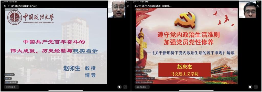 赵卯生教授和赵庆杰教授分别以“百年党史的历史经验与当代启示”和“遵守党内政治生活准则、加强党员党性修养”为题作了专题报告。赵卯生以党的百年奋斗历程为线,向学员们生动讲述了共产党百年一路走来的筚路蓝缕,从党史的角度让学员们深刻认识到中国共产党带领全国各族人民取得今天辉煌成就的来之不易,同时从党史中树立起坚定理想信念,坚定“永远跟党走”的信心决心。党史学习教育的价值目标就在于“不忘初心、牢记使命”、在于明白“中国共产党是什么,要干什么”、在于“看清楚过去我们为什么能够成功,弄明白未来我们怎样才能继续成功”。赵卯生鼓励学员们要勿忘昨天的苦难辉煌,无愧今天的使命担当,不负明天的伟大梦想。赵庆杰以《关于新形势下党内政治生活的若干准则》为核心,结合各个时期的典型事例,对《准则》的具体规定做出了生动的解读,让学员们从理论和现实两个层面对党内政治生活准则有了清晰的认识。讲座结束后,中国预备党员学员们进行了热烈地讨论。