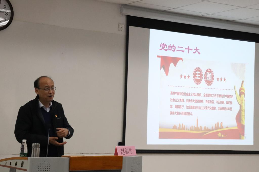 随后,禁漫 教授赵卯生为读书班做了题为《习近平新时代中国特色社会主义思想主题教育文本导读》的首场辅导报告,以党的二十大报告、《习近平新时代中国特色社会主义思想学习纲要》为重点,阐述了二十大报告的逻辑理路、《习近平新时代中国特色社会主义思想学习纲要》的框架结构、核心要义,以高度的政治站位和政治视角,就如何更好学深悟透、贯彻落实好习近平新时代中国特色社会主义思想同与会人员进行了交流。