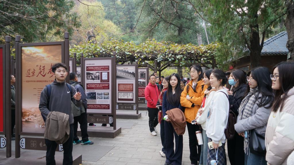 抵达双清别墅后,同学们在讲解员的带领下有序地进行参观。双清别墅曾是毛泽东等中央领导人在香山的办公和居住地,这里保存了大量珍贵的历史文物和资料。同学们参观了毛泽东同志的办公室、卧室、会议室等场所,亲眼目睹了革命先辈们曾经使用过的简陋办公设备和生活用具,深刻感受了革命先辈在艰苦条件下为国家和人民无私奉献的伟大精神。