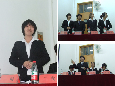 作为比赛的反方,所持观点为“青春偶像崇拜弊大于利”。在双方简短有力、各具特色的开场白之后,进入正式比赛环节。在开篇立论环节中,正方首先从个人与社会、长远与当下两个方面论证青春偶像崇拜在人格塑造、成长方向方面都具有指导性作用,并成为一个时代鲜明的符号,从而论证了青春偶像崇拜利大于弊。而我方则立足于当今现实,从横向和纵向的宏观比较,分别解析了青春偶像崇拜对个人、社会的深层弊端,进而论证青春偶像崇拜弊大于利。在攻辩环节,双方辩手就青春偶像崇拜在机制、人格塑造等方面进行了探讨,现场气氛迅速升温。在全场最激烈的自由辩环节,双方你来我往、唇枪舌剑,充分体现了一个辩手的智慧与口才。辩手临场的优异表现,赢得了在场观众的阵阵掌声。在最终的总结陈词阶段,双方辩手分别针对整场比赛中对方出现的漏洞予以总结,再次引发了大家的思考,也给比赛画上了一个圆满的句号。
