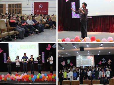 在节目中间时段,还穿插了一个游戏互动环节,师生一起积极参与游戏,气氛妙趣横生,让人感受到师生共同娱乐的欢乐气氛。
