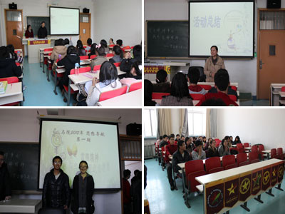 在端305开展了本学期第一期思想导航,本次的主题是“学习榜样事迹,践行雷锋精神”,由11级学生叶林梅、张厚望主持,11级学生参加了此次活动,分团委副书记袁芳辅导员出席了本次活动。