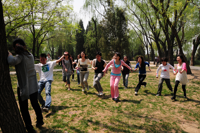 从仁寿殿到长廊,从西堤到苏州街,各种建筑、绘画、文学篇章纷呈眼前,向我们诉说着历史。秀美的风景也让人目不暇接,秀丽的万寿山、恬静的昆明湖、优雅精致的铜亭,同学们纷纷举起手中的相机照相留念。入春已有一段时间,同学们的出游热情很高。在午餐后大家在昆明湖边席地而坐,玩起了童年时给大家留下深刻印象的各种游戏,大家彼此分享快乐和喜悦,不时发出的欢笑声还吸引了行人的驻足观看。离开平时忙碌的学习和快节奏的生活,大家得到了充分的放松和释放。虽然当天园内游人很多,但丝毫不影响同学们的好心情,集体活动持续了将近一天的时间。暮色降临,同学们怀着依依不舍的心情离开了园林。