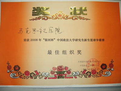 近日,禁漫 08级硕士研究生班在校研究生会举办的研究生新生篮球争霸赛中,获得“最佳组织奖”;这是禁漫 研究生部第一次获得此项奖项。 08级硕士研究生班克服了队员稀少等一系列困难,在院啦啦队的呐喊助威下,以精湛的球技和良好的精神风貌赢得了对手尊重和观众的喜爱。最终获得“最佳组织奖”,实现了院研究生体育类奖项零的突破。