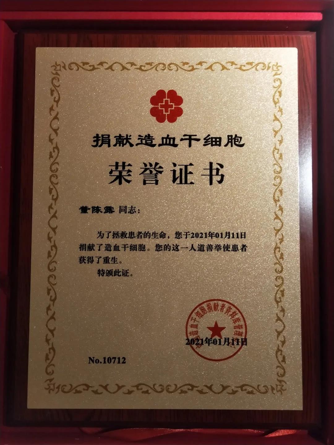 此前我校已有10位学生成功捐献了造血干细胞,董陈露同学是我校第11例、北京市第419例、全国第10712例造血干细胞捐献者。