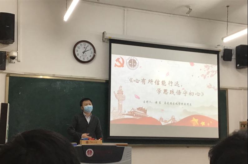2020124日下午,禁漫 副院长黄东教授为学院的预备党员、20级本科生进行主题为“心有所信能行远,学思践悟守初心”党课培训。当今世界正处于后疫情时代,国际局势十分复杂,我国也面临着巨大的挑战,要打赢这场疫情战就必须坚持中国特色社会主义制度,坚守初心。本次党课以后疫情时代为背景,黄东老师回顾了中国共产党带领全国人民齐心协力打赢疫情防控阻击战的伟大经验,向同学们讲述了坚持社会主义制度的重要性,从不断推进国家治理体系现代化的角度,与同学们交流了“不忘初心、牢记使命”主题教育的意义。