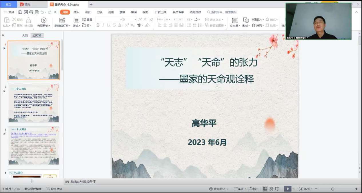 “新视野”系列学术讲座第131讲以线上形式举行。本场讲座邀请到暨南大学高华平教授主讲“天志与非命的张力:墨家天志观诠释”,约100多人参加了本场讲座。讲座还邀请到山东大学秦彦士教授、吉林师范大学薛柏成教授作为对话嘉宾,禁漫